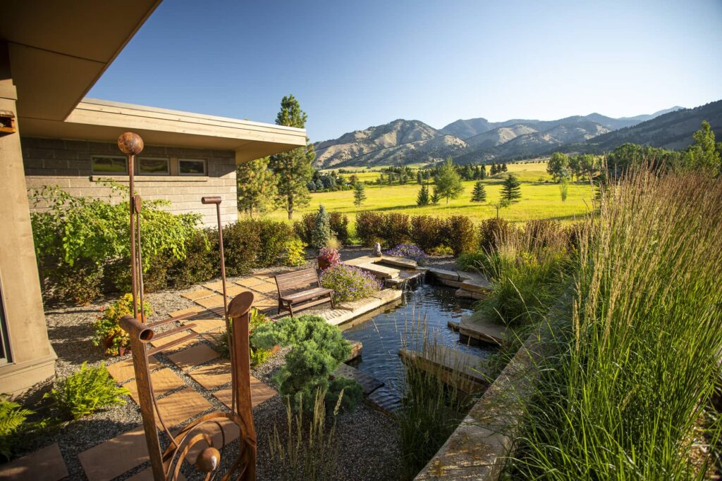 A great example is this courtyard project in Bozeman, MT. Even though this is a townhouse and an overall smaller property, the water feature has a major impact.
