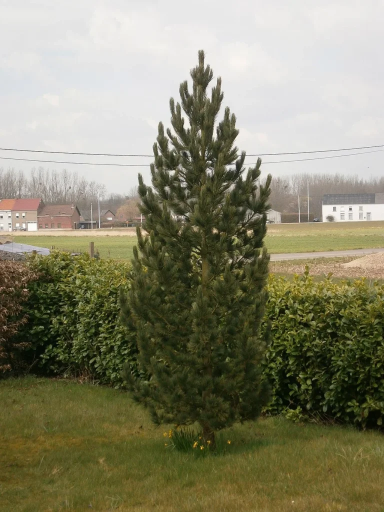 The following trees are all pine tree choices that make lovely evergreen additions. These trees stay green year-round and therefore make an excellent backdrop planting choice. Rows of evergreens can also be utilized for privacy or “screening” purposes.